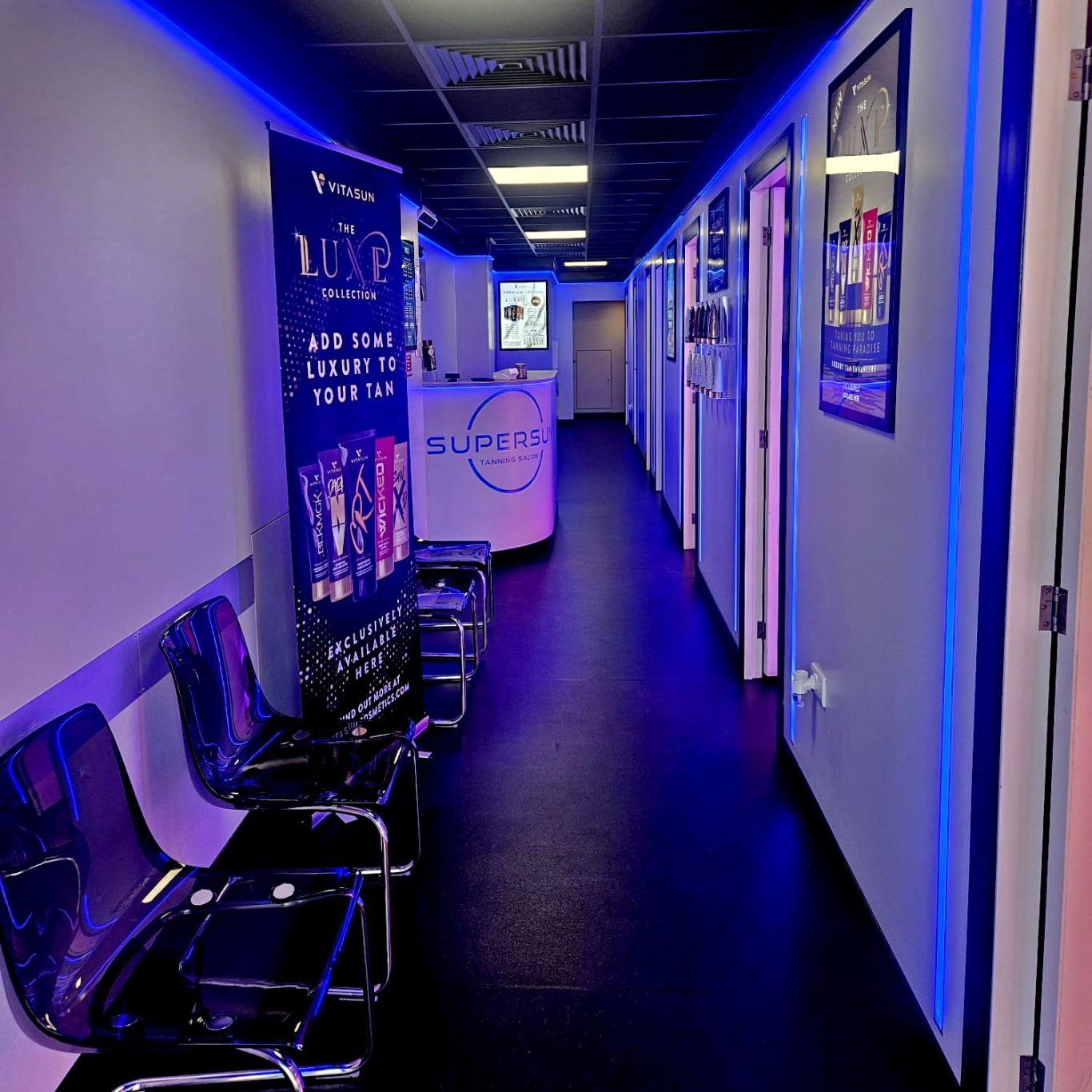 Step into a modern, contemporary tanning salon designed for comfort and results.