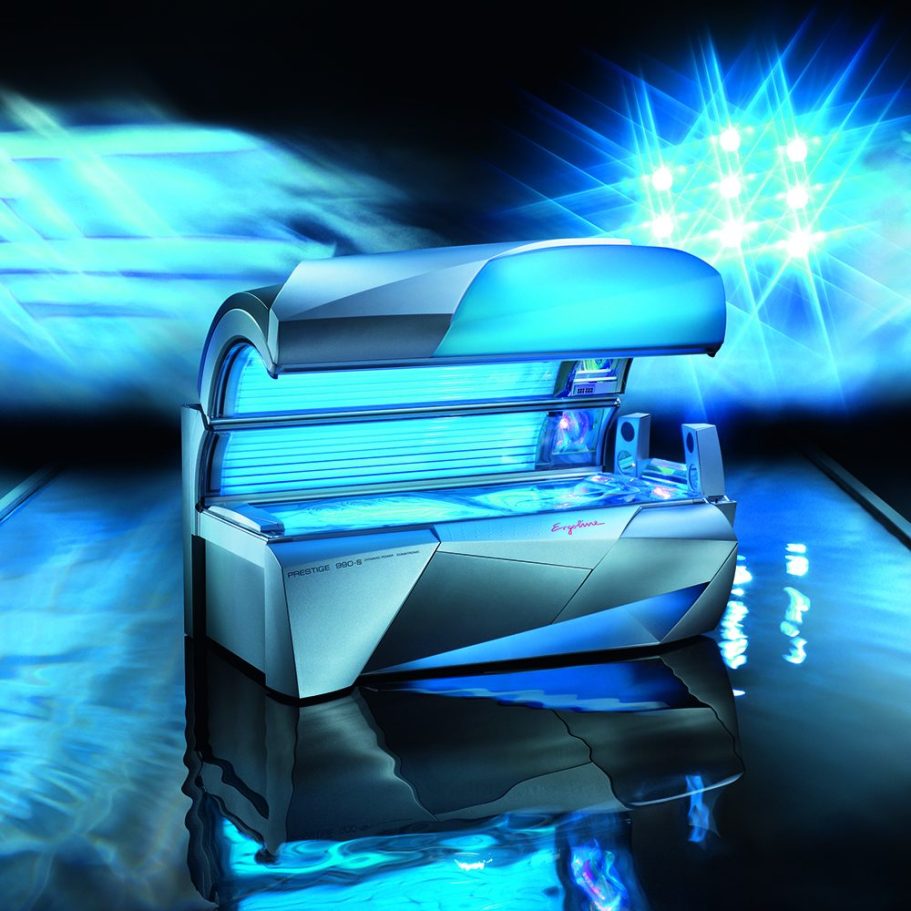 The Ergoline Prestige 990 is a high-performance sunbed equipped with 52 powerful 160W lamps, four Ultra Performance Plus facial tanners, and dedicated shoulder tanning. Key features include Climatronic climate control, Aqua Fresh hydration, and an integrated Aroma system for an enhanced tanning experience.