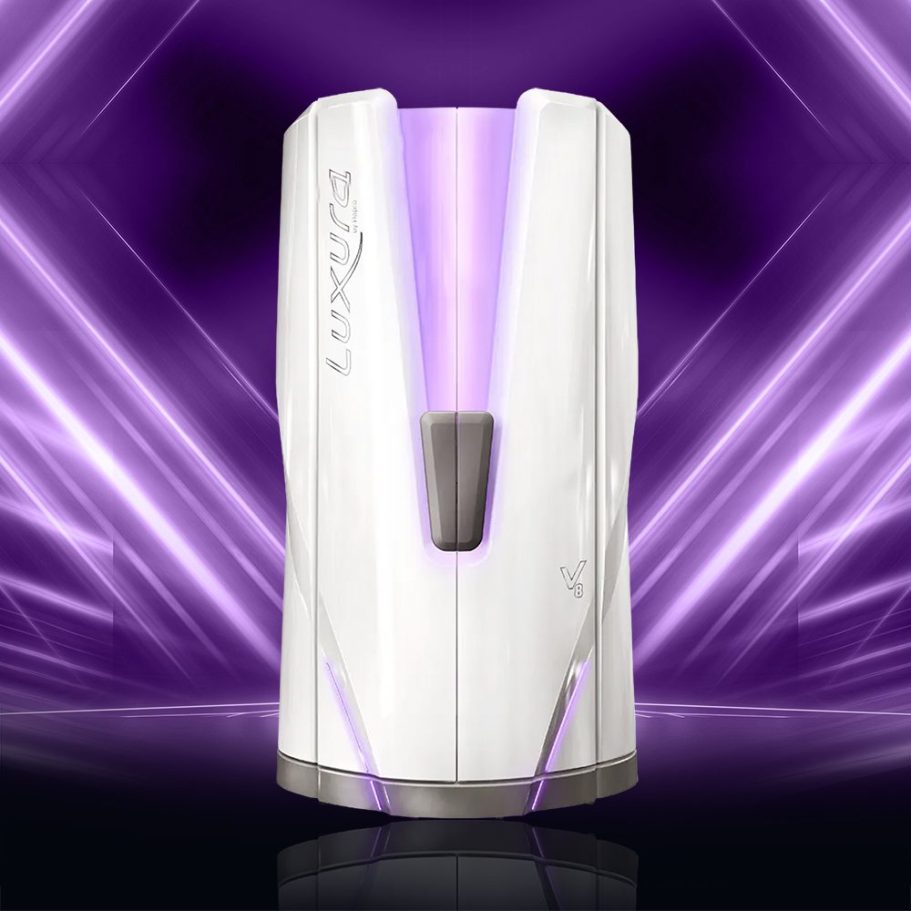 The Luxura V8 is a premium stand-up tanning system. Featuring Ambient FlowLight and MyLuxura connectivity, it delivers powerful results through a balance of UVA and UVB for deep pigmentation, while premium red and blue lamps enhance tanning performance and provide added skin care benefits for a more effective, comfortable experience.
