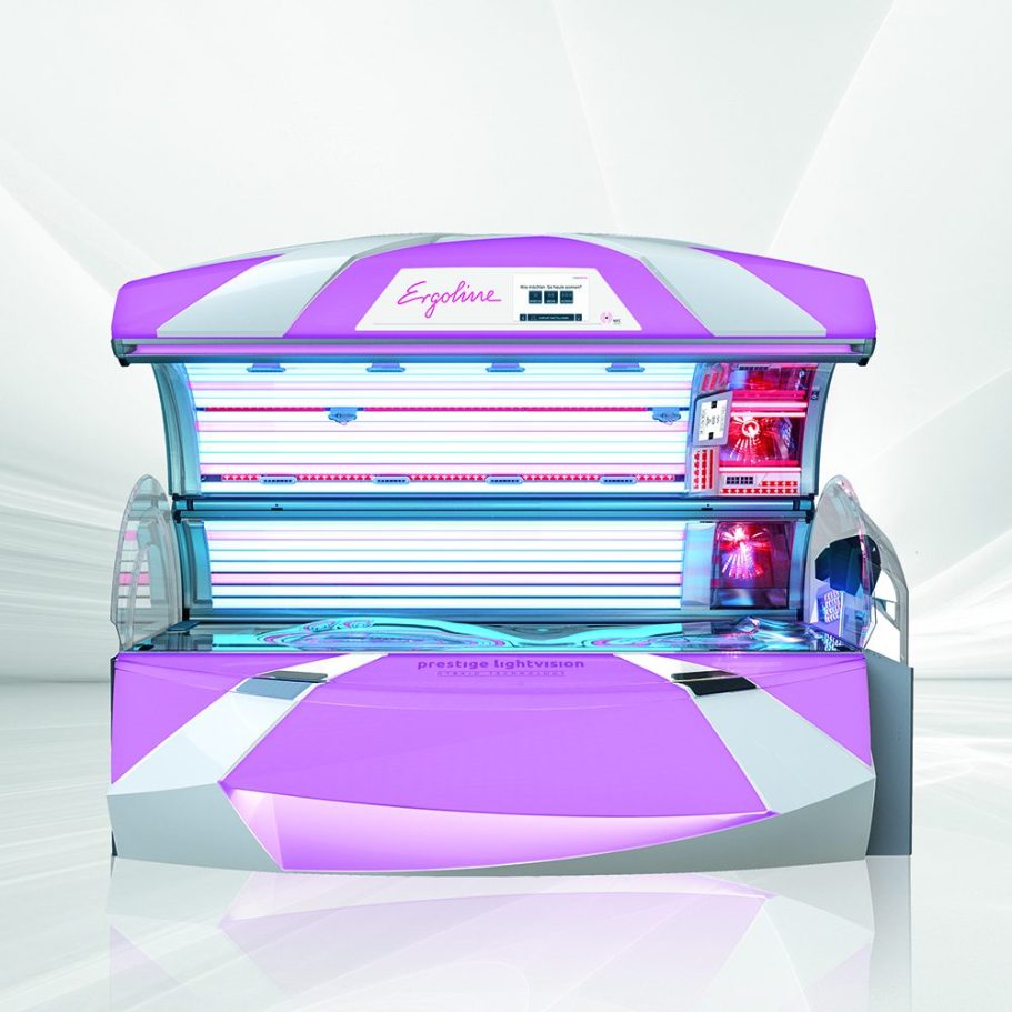The Ergoline Lightvision is a premium tanning system that blends powerful UV performance with advanced LED skincare technology. It features more than 200 Radiance LEDs to enhance your glow, intuitive touch displays for a personalized experience, and minimized infrared output to ensure a cooler, more comfortable tanning session.